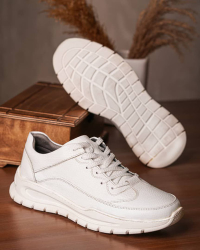 کفش ونس اسپرت مردانه چرمی با زیره ترکیبی PU و EVA | رنگ سفید کلاسیک